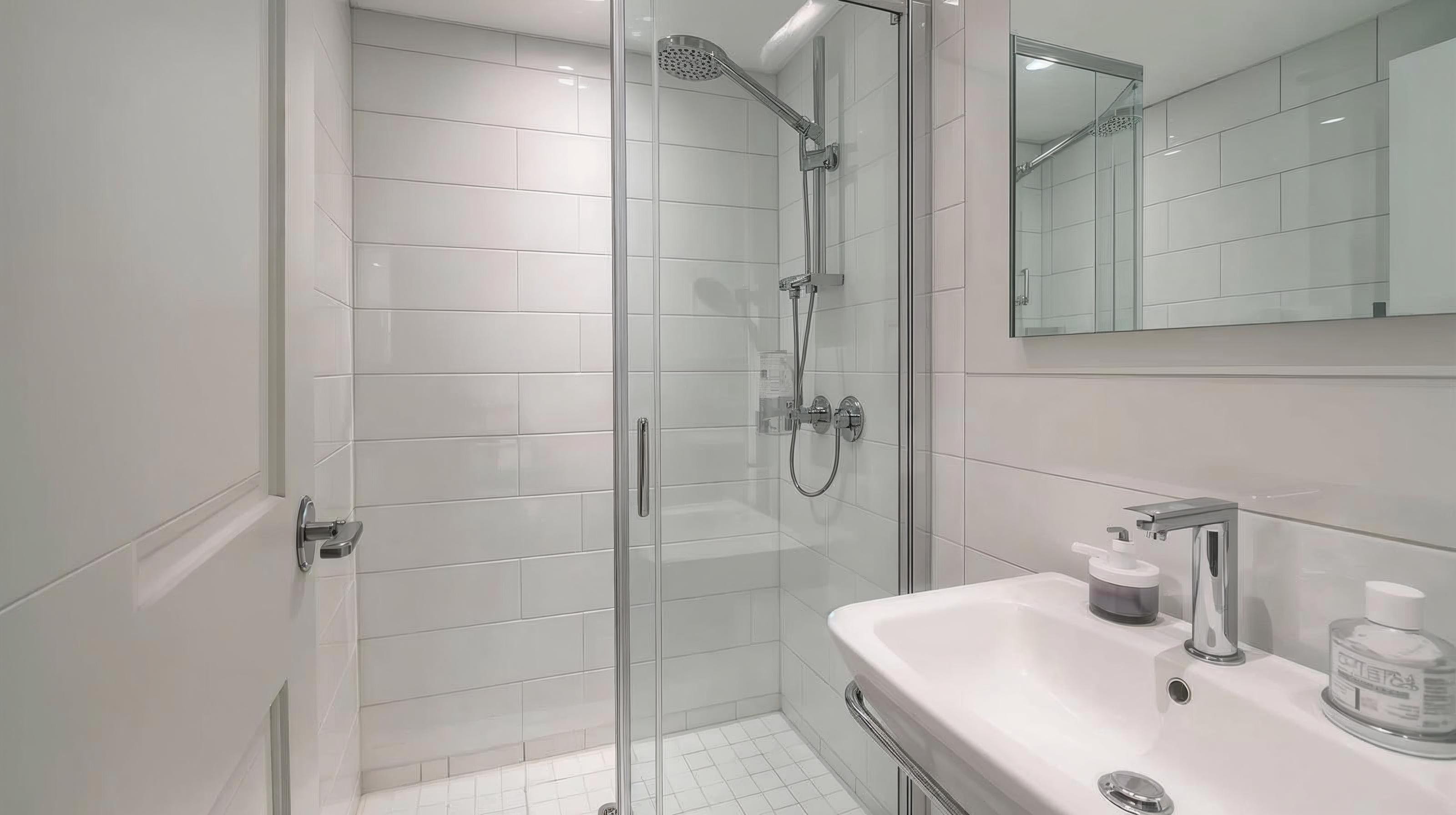 Hotel bathroom interior with shower screen
